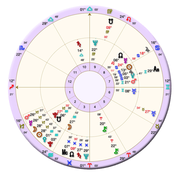 In the chart cast for the New Moon, there is Virgo, at almost 25-and-a-half degrees of Virgo rising. This point is energized by an opposition, “Full Moon” alignment from Neptune, who I mentioned is at the late degree of 29 Pisces, and Saturn, who is located at 25 degrees of Pisces.